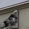 Fırtınanın yerinden söktüğü cami penceresini itfaiye ekipleri aldı