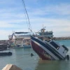 Fırtınayla birlikte suya gömülen tekne vinçle karaya çıkarıldı