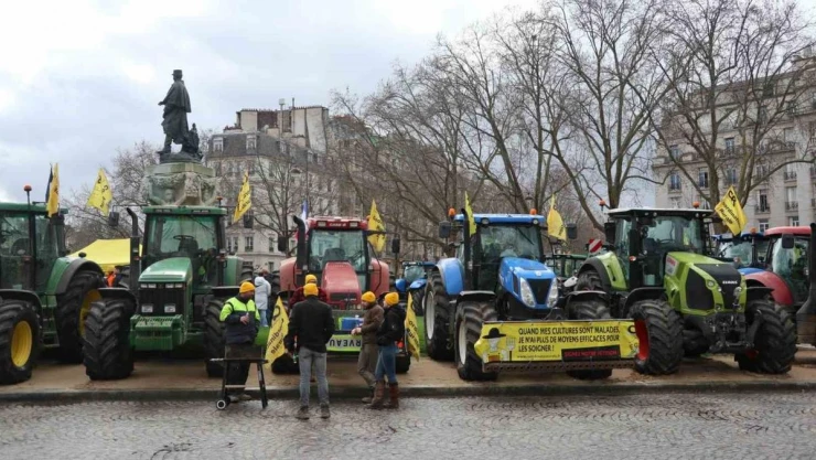 Fransa’da çiftçiler, yarın yapılacak tarım fuarı öncesinde düzenledikleri eylemde traktörleriyle Tarım Bakanlığı binasına giden yolu trafiğe kapattı.