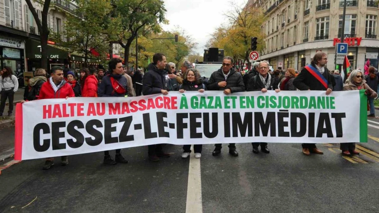 Fransa’nın başkenti Paris’te binlerce kişi Filistin’e destek için yürüdü. Republique Meydanı’nda başlayan ve işçi sendikaları ile sol partilerin desteklediği gösteride, “Acil ateşkes sağlansın”, “Gazze’deki katliam durdurulsun”, "İsrail’in bu yaptığı savaş değil soykırım”, “Filistin özgür kalacak”, “Gazze asla İsrail’in sömürgesi olmayacak” sloganları atan Filistin destekçileri, “Macron işbirlikçi”, “İsrail’e birileri yeter demeli” gibi sloganlarla İsrail ve Fransa Cumhurbaşkanı Emmanuel Macron’a tepki gösterdi. Sık sık İsrail Başbakanı Binyamin Netanyahu için “katil” sloganı atan göstericiler, ABD Başkanı Joe Biden ile İsrail Başbakanı Netanyahu’nun eli kanlı pankartlarını taşıdı.