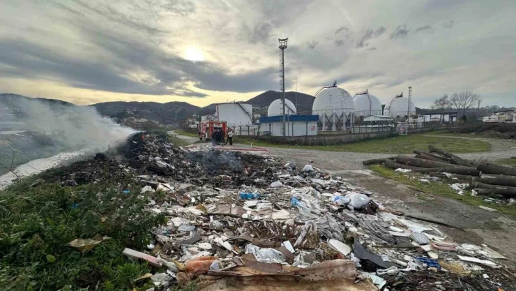 Samsun'da bir gaz dolum tesisisin yanındaki boş arazide atık malzemelerin yanması çevrede paniğe yol açtı.