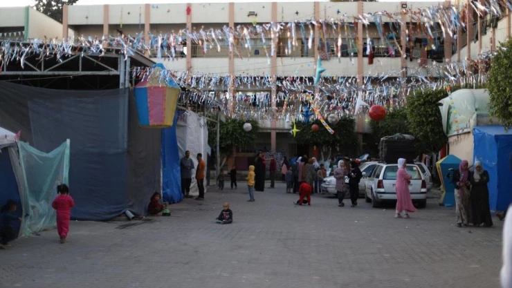 İsrail’in Gazze Şeridi’ndeki saldırıları 157 gündür devam ediyor. İsrail güçlerinin bölgeye gıda, içme suyu ve tıbbi malzeme girişini engellemesi insani krizi kritik seviyelere ulaştırıyor. Ramazan ayının gelmesiyle tüm zorluklara rağmen büyük sevinç yaşayan Filistinliler, Gazze Şeridi’nin merkezindeki Deir El Balah kentinde bulunan barınma merkezini rengarenk süslemelerle donattı. Gazze Şeridi’nin merkezindeki Maghazi Mülteci Kampı’nda yaşayan yüzlerce Filistinli İsrail’in bombardımanı altında ilk teravih namazını dar sokaklarda kıldı. Yüzlerce kişi, Filistin’in İsrail işgalinden kurtarılması, Gazze Şeridi üzerindeki kuşatmanın kaldırılması ve İsrail hapishanelerindeki tüm mahkumların serbest bırakılması için dua etti.