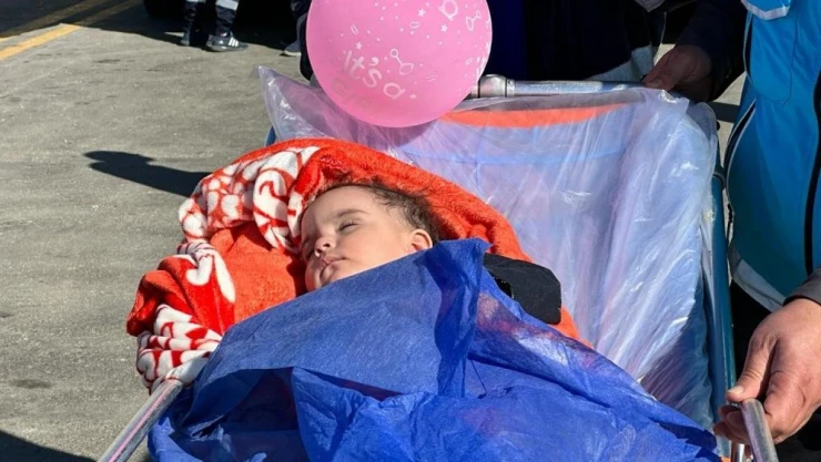 İsrail’in Gazze’ye yönelik gerçekleştirdiği saldırılarda yaralanan 7 aylık kız bebek Hala Ashraf’ın da bulunduğu uçakta Türkiye’den gelen 7 kişilik uzman sağlık personeli, hastaların durumunu yol boyunca takip edecek.