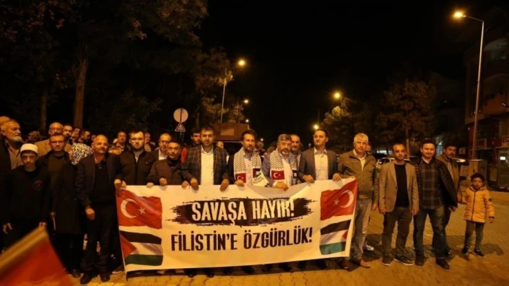 Yürüyüş sonunda belediye binası önünde katılımcılara teşekkür eden Belediye Başkanı Muharrem Akçadurak, “Bize burada belki bu tür şeyler basit gibi geliyor olabilir ama, televizyonlara bakmakta zorlanıyoruz. Çocukların pğarça parça çıkması hepimizi yürekten üzüyor. Tamamen bir soykırım. İslamiyet’e yapılmış bir saldırı olarak görüyorum. Başka hiçbir şey değildir. Filistin’de ölen çocuklarımıza, yaşlılarımıza, kardeşlerimize Allah’tan rahmet diliyorum. Yaralılarımıza şifalar diliyorum. İnşallah dualarımız onların yanında olur” ifadelerini kullandı.