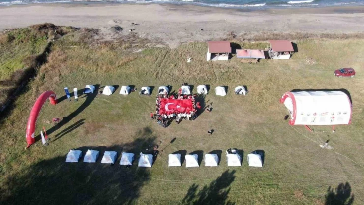 Düzce’nin Akçakoca ilçesinde sahilde gerçekleştirilen kampta çadırlar Ay yıldız şeklinde düzenledi. 100 genç iki gün boyunca deniz kıyısında faaliyetlerde bulunurken, 29 Ekim Cumhuriyet Bayramı’nda dev Türk bayrağı açarak kutladı.