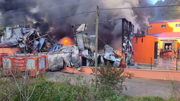 Trabzon'un Beşikdüzü ilçesi ile Giresun'un Eynesil ilçesi arasında yer alan balık fabrikasında çıkan yangın büyük paniğe neden oldu.