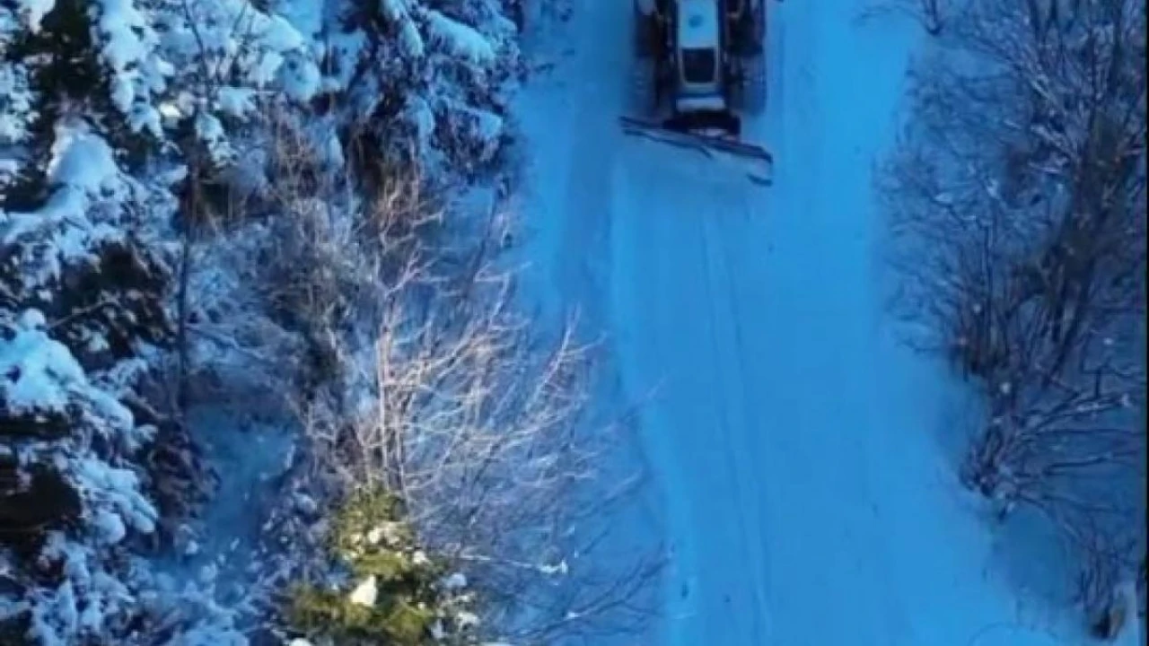 Geçtiğimiz günlerde kar yağışının ardından beyaz örtüyle kaplanan Giresun'un yüksek kesimlerinde karla mücadele çalışmaları dron ile görüntülendi.