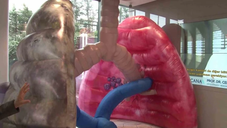 Medicana Hastanesi ‘17 Kasım Akciğer Kanseri Farkındalık Günü’ dolayısıyla akciğer kanserine dikkat çekmek için Ataşehir Medicana Hastanesi’nde sigara içmeyen ve içilen şeklinde zararı gösterilen akciğer maketi kurdu. Göğüs Cerrahisi Uzmanı Prof. Dr. Celalettin Kocatürk ise akciğer kanseri farkındalık gününde vatandaşlara uyarılarda bulundu. Kocatürk, akciğer kanseri farkındalığını arttırmaya çalıştıklarını ve akciğer kanserinin kanserden ölümlerde başta geldiğini ifade etti. Kocatürk, “Tütün ürünleri hiç kullanılmasa bile 100 kişiden bir tanesi akciğer kanseri oluyor” dedi.