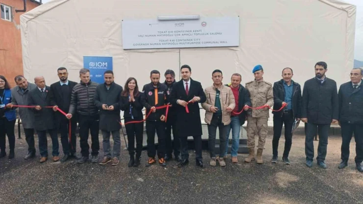 Kaymakam Tarık Buğra Seyhan yapmış olduğu konuşmada, "Birleşmiş Milletler Göç Kurulana çok teşekkür ediyorum, hem Tokat Konteyner Kentimizde hem de TOKİ Konteyner Kentimize iki adet çok amaçlı salonu bizlere armağan etti. Depremin ilk günlerinden itibaren arama kurtarma faaliyetlerinde ve ihtiyaçların giderilmesi hususunda büyük emeği olan öncelikle olarak ilçemize koordinatör Vali olarak görevlendirilen Tokat Valimiz Numan Hatipoğlu’a ve İstanbul Esenler Belediye Başkanı Mehmet Tevfik Göksu’ya şükranlarımı sunuyorum. Salonlara isim olarak TOKİ Konteyner Kentimizde büyük emeği olan Başkanımız Mehmet Tevfik Göksu’nun adını, Tokat Konteyner Kentte de Tokat Valimiz Numan Hatipoğlu’nun adını verdik. Kendilerine ve emeği geçen herkese tekrardan şükranlarımı sunuyorum” diye konuştu.