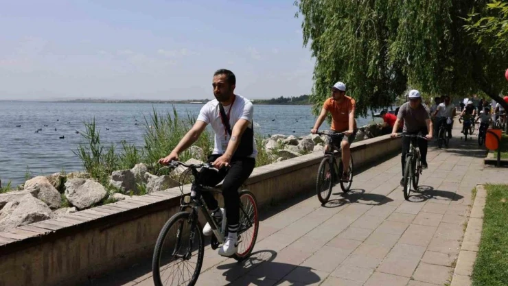 Bisiklet dağıtımının ardından Odabaşı’nın start vermesiyle, katılımcılar gruplar halinde bisikletleriyle Mogan Gölü’nün etrafında tur attı.