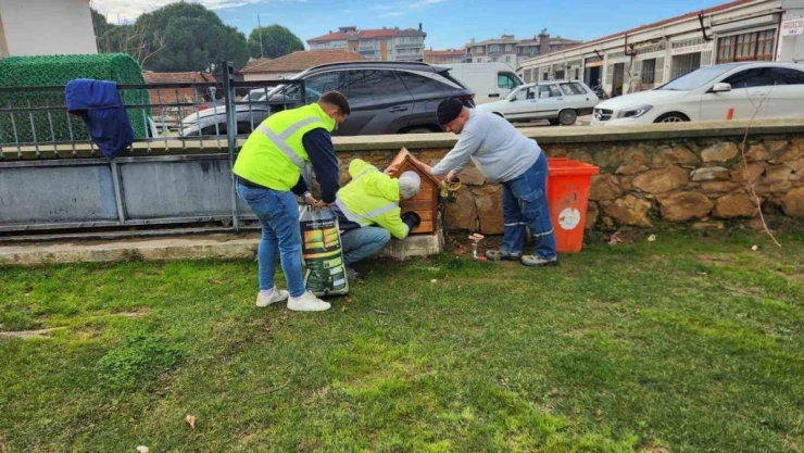 Balıkesir’in Gömeç Belediyesi, bu soğuk kış günlerinde sokaklarda ki kedilerin daha korunaklı yaşayacağı kedi evlerini mahallelere yerleştiriyor