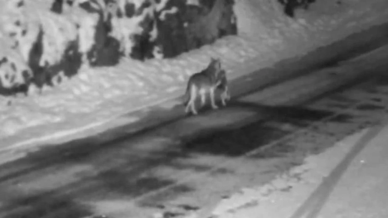 Gümüşhane’nin Kürtün ilçesi Özkürtün Beldesi’nde aç kalan kurtlar Süme Mahallesi’ne indi. Mahalle merkezine inen 2 kurt bölgede bir süre dolaştıktan sonra ormanlık alanda gözden kayboldu. Bir süre sonra tekrar ortaya çıkan kurtlardan bir tanesinin ağzında avladığı köpekle yol üzerinde yürüdüğü anlar ise bir iş yerinin güvenlik kameralarına yansıdı. Parçalanmış sokak köpeğini ağzında taşıyan kurt bir süre sonra karanlıkta gözden kayboldu.