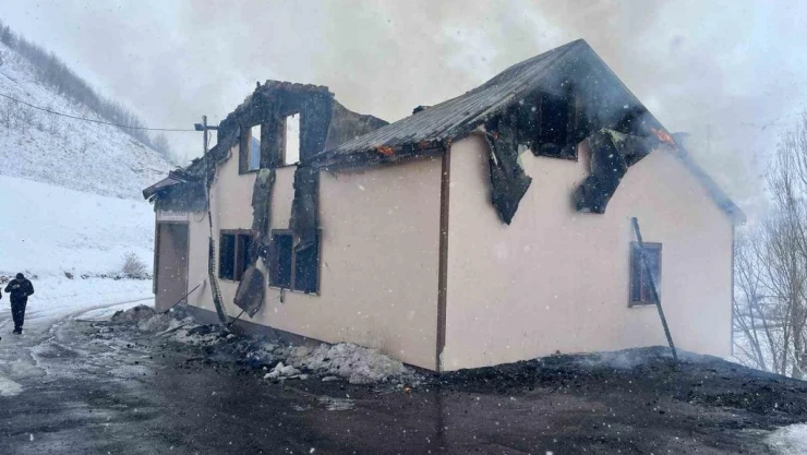 Gümüşhane’nin merkeze bağlı Şephane köyünde çıkan yangında alevlere teslim olan 2 katlı köy konağı ve muhtarlık binası kullanılamaz hale geldi.