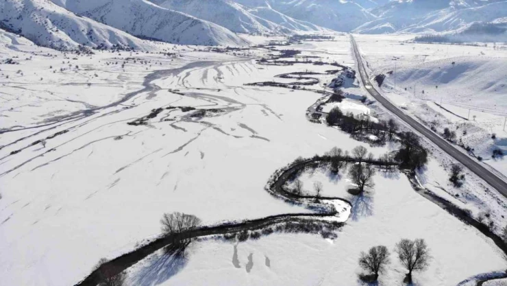 BİTLİS (İHA) – Bitlis’in Tatvan ile Hizan ilçeleri arasında bulunan Güzeldere Menderesleri, kar yağışı ile birlikte kartpostallık görüntüler oluşturdu.