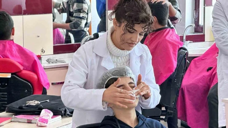 Köylere kadar gidip saç kesim ve bakımı yaptıklarını ifade eden Öğretmen Fahrettin Vural da, ’’Muharrem Malazgirt Mesleki ve Teknik Anadolu Lisesi Saç Bakımı ve Güzellik Hizmetleri Bölümünde, bir güzellik merkezinde bulunan bütün uygulamalar yapılmaktadır. Erkek saç kesimi, erkek saç bakımı, erkek saç şekillendirme, cilt bakımı, el ayak bakımı, her türlü makyaj çeşitleri, kadın saç kesimi, kadın saç şekillendirme, erkek kadın saç boyama, lazer epilasyon uygulamalarımızı atölyemizde öğrencilerimizle beraber yapıyoruz. Bu atölyemizde her hafta mahalle sakinleri, yurt öğrencilerimiz, okulumuzda bulunan bütün öğrencilerimizin ve diğer okullardaki öğrencilerin bakımlarını, tıraşlarını yapıyoruz. Her hafta sonu aile ziyaretlerinde öğrencilerimizle beraber köylere gidip öğrenci tıraşları yapıyoruz. Yürümekte güçlük çeken köy ve mahalle sakinlerinin bakımlarını da yapıyoruz. Okulumuzda 12. sınıflarımızla birlikte 150’ye yakın saç bakımı ve güzellik hizmetleri bölümünü okuyan öğrencimiz var. Mezun olduktan sonra dışarıda iş imkanları onları bekliyor. Tiyatro alanında, sinemalarda, cilt bölümünde estetisyenlikte işini rahatlıkla buluyor. Ayrıca iş yeri belgesi ile beraber mezun edildikten sonra kendilerine devlet destekli iş yeri açabiliyorlar’’ ifadelerini kullandı.