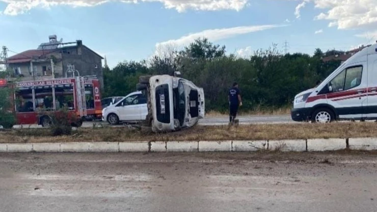 Elazığ'da refüje çıkan hafif ticari araç yan yattı. Kazada, 5 kişi yaralandı.