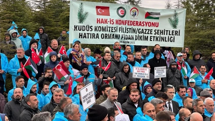 HAK-İŞ tarafından Kudüs Komitesi Hatıra Ormanı’nda 29 Kasım Filistin Halkıyla Uluslararası Dayanışma Günü dolayısıyla "Filistin Gazze Şehitleri Hatıra Ormanı Fidan Dikim Etkinliği" düzenlendi.
