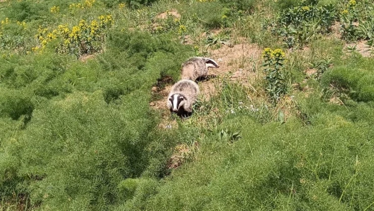 Hakkari’nin Otluca köyünde nesli tükenme tehlikesi altında olduğu için kırmızı listede yer alan porsuk yeşillik alanda görüntülendi.