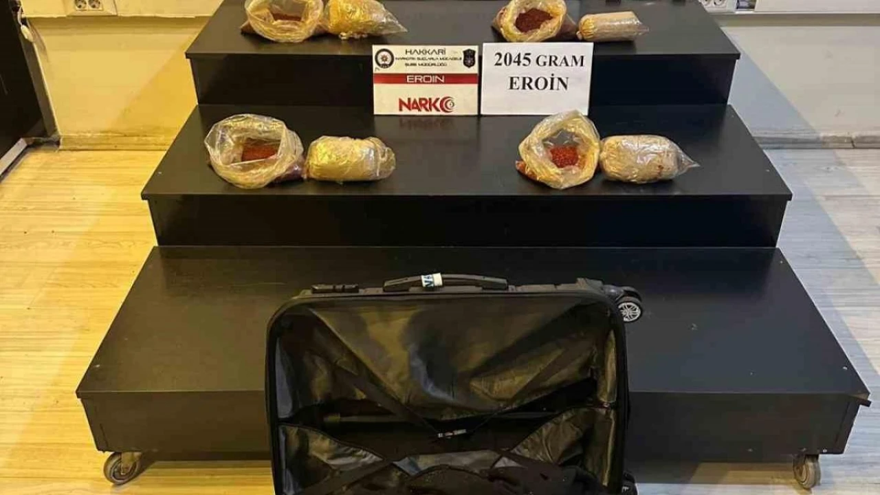 Hakkari Valiliğinden yapılan açıklamada, “Hakkari İl Emniyet Müdürlüğü görevlilerimizce Yüksekova ilçemizde yapılan rutin kontrollerde narkotik madde arama köpeği Fox ile bir yolcu otobüsünde arama yapıldı. Yapılan aramada 2 şahsın valizinde şeffaf pul biber poşetlerinin içine gizlenmiş vaziyette 4 ayrı paket halinde daralı ağırlığı 2 kilo 45 gram olan eroin maddesi ele geçirildi. Olayla ilgili gözaltına alınan 2 şahıs, emniyetteki sorgularının ardından çıkarıldıkları adli makamlarca tutuklandı” denildi.
