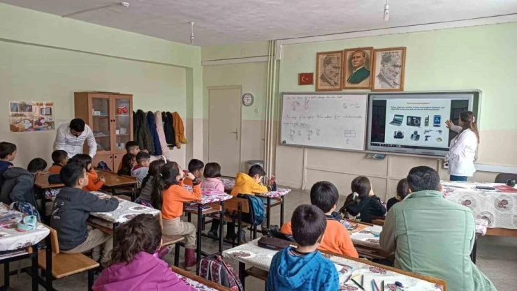 Eğitimde öğrencilere; atık çeşitleri nelerdir? Geri dönüşümün önemi, atıkların geri dönüşüm sonrası nerelerde kullanıldığı gibi konularda bilgiler verildi.