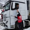 Hakkari'de kar ve tipiden dolayı yolda bekletilen araç sürücülerine Kızılay görevlileri tarafından kumanya dağıtıldı.