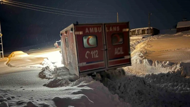 Ağrı'da kar ve tipi nedeniyle yolu kapanan köyde mahsur kalan hamile kadın, paletli ambulansla hastaneye yetiştirildi.