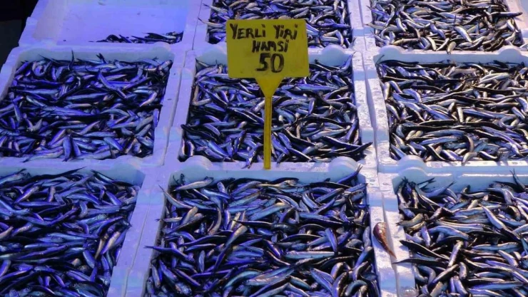 Sezon başından beri bol miktarda avlanan hamsi, yeni yılda da tezghları süslemeye devam ediyor. Trabzon Balık Hali'nde 2023 yılının son gününde kilosu 60 TL'ye satılan hamsi, yeni yılın ilk gününde 10 TL, gerileyerek 50 TL'ye inerken en çok tercih edilenler arasında yerini almayı sürdürdü.