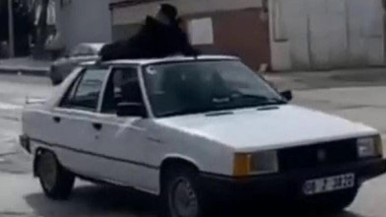 Çorum'da hareket halindeki otomobilin tavanına çıkan genç, araçtan düşerek yaralandı. O anlar cep telefonu kamerasına yansıdı