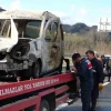 Hurdaya dönen araç çekici yardımıyla kaldırılırken, polis ve jandarma ekipleri yangınla ilgili inceleme başlattı.