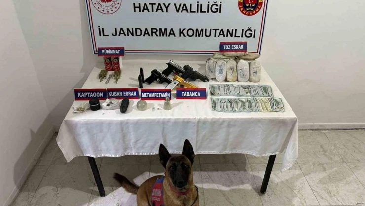 Hatay İl Jandarma Komutanlığı ekipleri tarafından huzur ve güvenin sağlanması için uygulamalara devam ediyor. Uyuşturucu madde imal ve ticareti suçuyla mücadele çerçevesinde, Altınözü ilçesine bağlı Keskincik Mahallesi’nde yapılan uygulama kontrolünde 1 şüpheli şahıs yakalandı. Şüpheli şahsın evinde yapılan aramalar neticesinde, 10 kilo takoz esrar, 56 uyuşturucu hap, 100 gram kubar esrar, 5 gram metamfetamin, 2 ruhsatsız tabanca ve şarjör, 2 faturasız kurusıkı tabanca, 103 tabanca mermisi ve bu suçlardan kazanç elde edilen 17 bin 700 dolar (510 bin 85 TL) ele geçirildi.