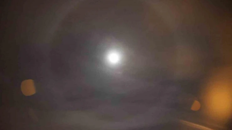 Hatay’da Ay’ın etrafında oluşan hale gökyüzünü aydınlattı.