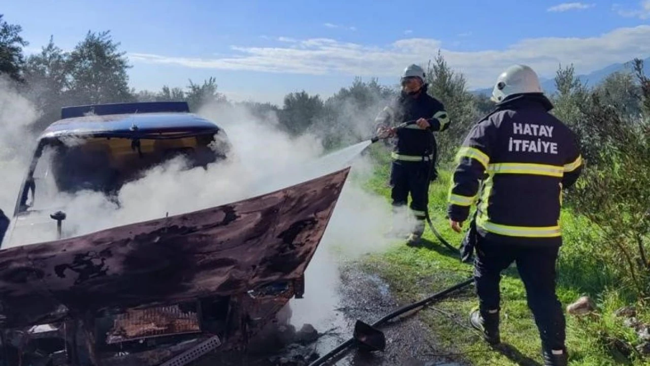 Hatay'da otomobilde yangın çıktı