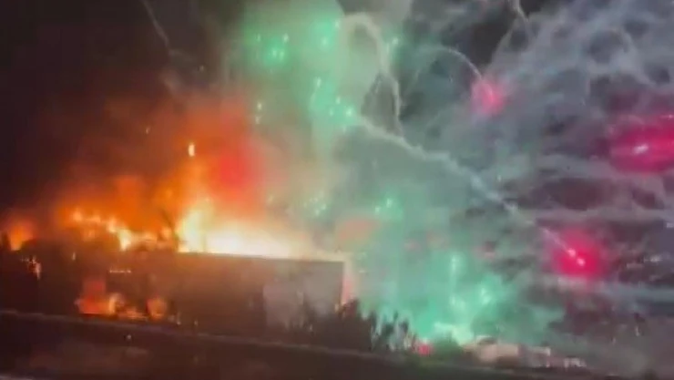 Havai fişek yüklü tır alev alınca ilginç görüntüler ortaya çıktı
