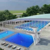Gençlik ve Spor Bakanlığı’nın destekleriyle hayat bulan proje kapsamında Havuzlu Park’ın bulunduğu yaklaşık 30 bin metrekare alan sil baştan yenileniyor. Mevcut yapının yerine daha modern tekniklerle, fonksiyonel olarak daha uygun, kullanıcı kapasitesi artırılmış, ulusal müsabakaların da düzenlenebileceği standartlarda proje tasarlandı. Proje inşaat alanı 8 bin 500 metrekare olan yapı, iki blok olarak kurgulandı. Tesisin girişi, mevcuttaki yapı gibi parselin güney tarafından olacak. Ana blok; idari birimler, danışma, bekleme-sergi ve fuaye alanı, spor faaliyetlerinin yürütüleceği idari birimler, seminer odası, otopark ile parka ve tesise hizmet edecek restoran ile servis birimlerinden oluşacak. Diğer blok olan spor bloğunun alt katında soyunma odaları, duşlar, hamam ve sıcak su havuzları ile açık havuzların teknik birimleri yer alacak. Havuz katında ise; FINA standartlarına uygun tam olimpik kapalı yüzme havuzu ile açık yüzme havuzu bulunacak. Açık havuzun bir kısmının derinliği artırılarak, atlama havuzu olarak da kullanılabilecek. Mevcut atlama kulesinin yerine FINA standartlarına uygun 10 metrelik bir atlama platformu planlandı. Açık havuzlun kotunda hizmet verecek şekilde spor salonu, ofisler, çok amaçlı bir salon ve kafeterya tasarlandı. Kaba inşaatın tamamlandığı projede çelik çatı imalatlarına başlandı. Diğer taraftan da duvar örme ve elektrik mekanik imalatları devam ediyor.