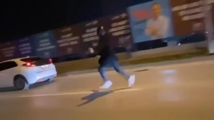 Olay, Ankara Yolu Caddesi üzerinde meydana geldi. Edinilen bilgiye göre, kafasına kask takan bir kişi altındaki hayali motosiklet ile caddeye çıktı. Trafiği hiçe sayan kişi, koşarak otomobil solladı. Kendi canını da tehlikeye atan vatandaş, diğer sürücüler tarafından anbean amatör kamera ile kaydedildi.