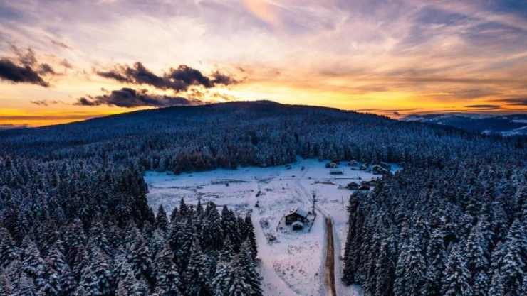 Bolu’da geçtiğimiz hafta yüksek rakımlı mevkilerde kar yağışı etkili oldu. Kar yağışı dolayısıyla Aladağlar, Sarıalan Yaylası, Köroğlu Dağları beyaz örtüyle kaplandı. Karlar içerisinde kalan çam ağaçları gün batımında havadan görüntülendi. Ortaya çıkan görüntülerde çam ağaçlarının üzerindeki karlar ve gün batımı manzarası görenleri mest etti. Gün batımındaki renk cümbüşü, görsel şölen oluşturdu.