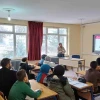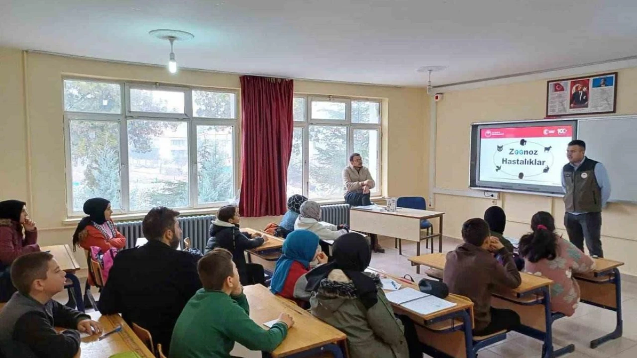 Afyonkarahisar Hocalar ilçesinde veteriner hekimler tarafından lise öğrencilerine hayvanlardan insanlara geçen hastalıklar anlatıldı.