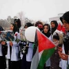 Erzurum’da yoğun kar yağışına rağmen Havuzbaşı Kent meydanında toplanan hekimler ve sağlık çalışanları, Filistin’de yaşanan drama dikkat çekerek İsrail’i kınadı.