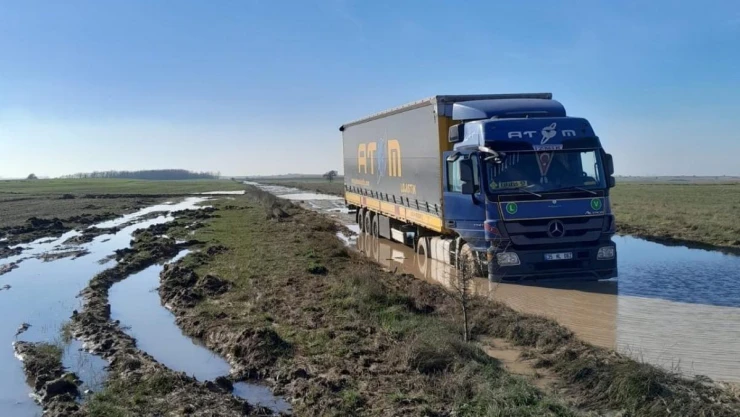 Tekirdağ’da bulunan Veliköy Organize Sanayi Bölgesi’nin içinden geçen toprak yoldaki çamur sorunu, hem sürücüleri hem sanayicileri çileden çıkartıyor. Fabrikalara mal getiren tırlar ve kamyonların yanı sıra küçük araçlar ve sanayiciler de çamur nedeniyle zor anlar yaşıyor.