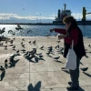 Sinop'ta yaşayan Selma Teker, 13 yıldır Sinop sahilindeki kuşları yemliyor.