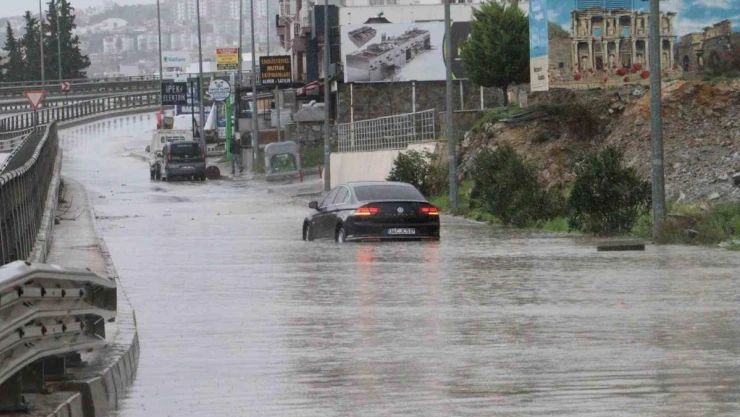 Kuşadası’nda öğleden sonra başlayan ve zaman zaman etkisini artıran sağanak, günlük yaşamı olumsuz etkiledi. Yağış nedeniyle Söke-Kuşadası karayolu trafiğinde aksamalar oluştu. Biriken yağmur suları Karayolları 2’nci Bölge Müdürlüğü’nün yetki ve sorumluluğunda olan Otogar Kavşağı ile Kuşadası Ticaret Odası (KUTO) ve Kuşadası Emniyet Müdürlüğü önündeki yolların bazı bölümlerini göle çevirdi. Oluşan su birikintileri nedeniyle araçlar yolda mahsur kaldı. Suya gömülen araçlar çekici yardımıyla kurtarıldı. Yaşanan olumsuzluklara Aydın Büyükşehir Belediyesi ile Kuşadası Belediyesi ekipleri müdahale etti. Her sağanakta aynı problemin yaşandığına dikkat çeken sürücüler, Karayolları 2’nci Bölge Müdürlüğü’nü göreve çağırdı.