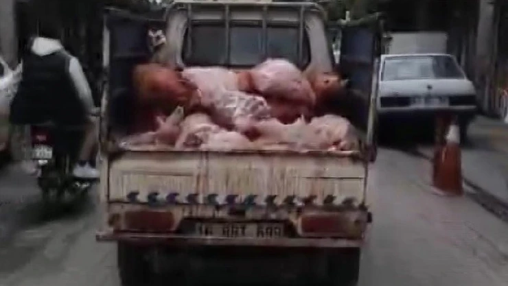 Şanlıurfa’nın Eyyübiye ilçesine bağlı Arap Meydanı semtinde plakası ve sürücüsü öğrenilemeyen bir kamyonetin kasasında hijyen şartlarına uyulmadan sakatat taşındığı görüldü. Tepki çeken görüntüler bir başka sürücü tarafından cep telefonu kamerasıyla kaydedildi. Görüntüler sosyal medyada gündem oldu.