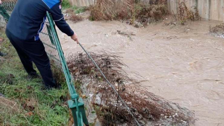 Kütahya'nın Hisarcık ilçesinden geçen Küçayçay'da sel sularına kapılan kediyi belediye zabıta ve itfaiye ekipleri kurtardı.