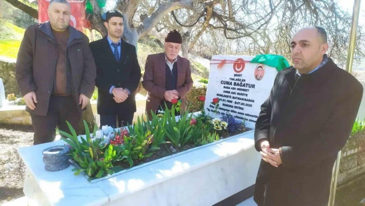 Suriye’nin İdlib kentinde 27 Şubat 2020’de rejim unsurlarının hava saldırısı sonucu şehit düşen Tankçı Sözleşmeli Er Cuma Bağatur, Batman’ın Sason ilçesinde mezarı başında dualarla anıldı.