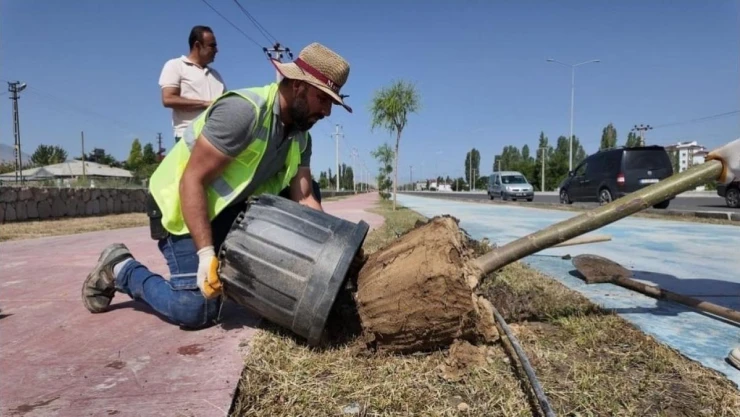 Iğdır Belediyesi Park ve Bahçeler Müdürlüğü tarafından şehrin çeşitli bölgelerinden kuruyan ağaçların yerine yeni ağaçlar dikildi.