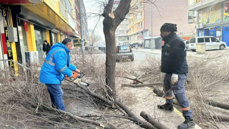 Iğdır Belediyesi Park ve Bahçeler Müdürlüğü ekipleri, görev ve sorumluluk alanlarında ağaç budama çalışmalarına devam ediyor.