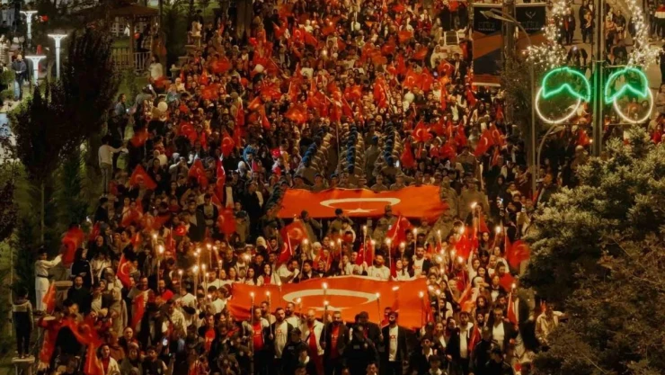 Iğdır'da Cumhuriyetin 100. yılında 100 metre Türk bayrağı ile fener alayı