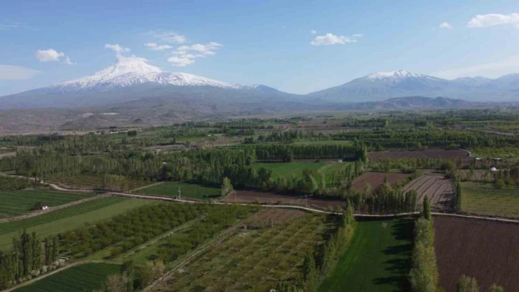 Bahar aylarında rengarenk bir tabloya dönüşen Iğdır ovası ve dağları doğaseverler için muhteşem bir görsel sunuyor. Ağrı Dağı’nın heybetli manzarası eşliğinde görenlerin aşık olduğu manzara insanlara unutulmaz bir doğa gezisine çağırıyor. Melekli kasabasında yer alan İrem Bağları yeşilliği ile göz kırparken şehrin etrafında bulunan Ağrı Dağı, Pamuk Dağı ve Zor Sıra Dağları da zirvesinde bulunan kar kütlesi ile görenlere iki mevsimi yaşatıyor. Doğa harikası güzellik havadan görüntülendi.