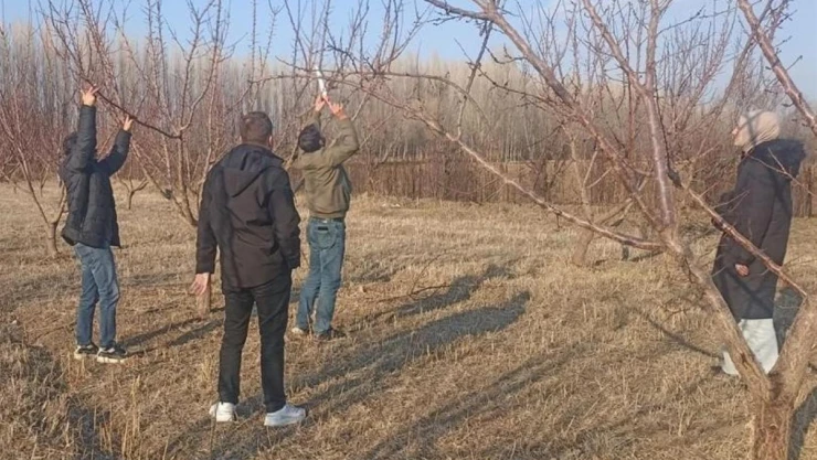 Iğdır’da bahar mevsimin gelmesi ile birlikte meyve ağaçlarında budama çalışmaları başladı.