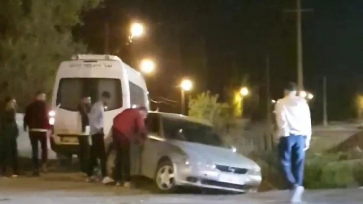 Iğdır'da karşıdan gelen minibüse yol vermeye çalışan otomobil kaza yaptı.